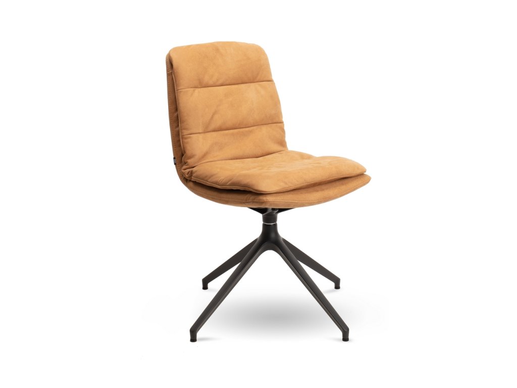 Židle vyniká krásným designem a dokonalou kombinací čalouněného sedáku a kovové základny. Vnitřní rám je vyroben z dřevěného profilu a výplň tvoří vrstvená, polyuretanová pěna, která poskytuje vynikající komfort a pohodlné, měkké sezení. K dispozici je množství kvalitních látek a kůží, lze si tak vybrat čalounění dle Vašeho interiéru nebo vkusu.